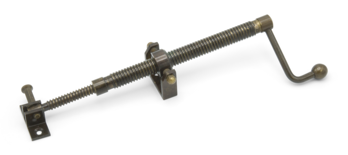 Handle style, long telescopic screwjack with with small brackets and a bronze finish.