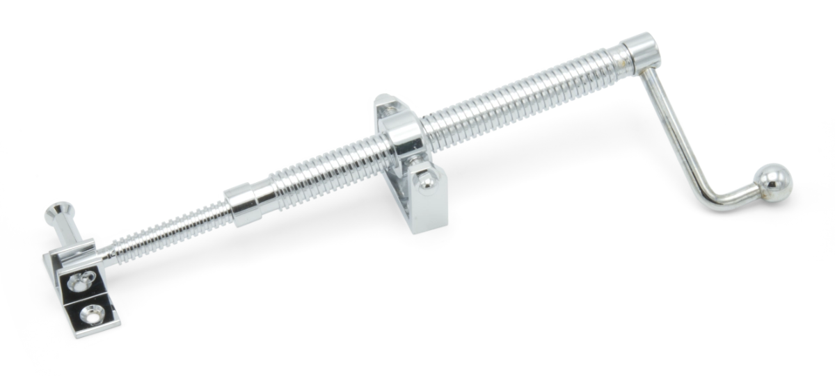 Handle style, long telescopic screwjack with with small brackets and a polished chrome finish.