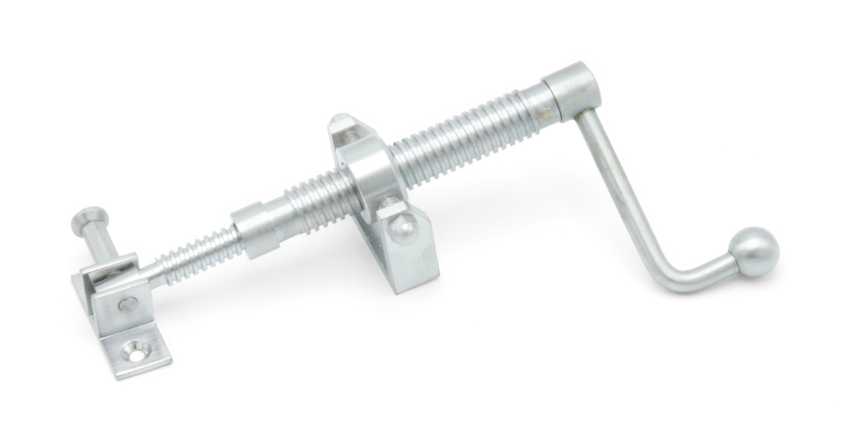Handle style, short telescopic screwjack with with small brackets and a satin chrome finish.