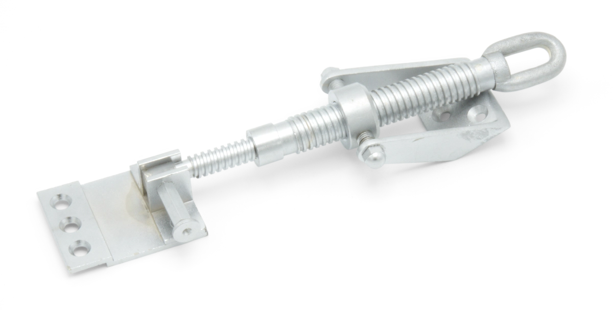 Short telescopic screwjack with with large brackets and a satin chrome finish.