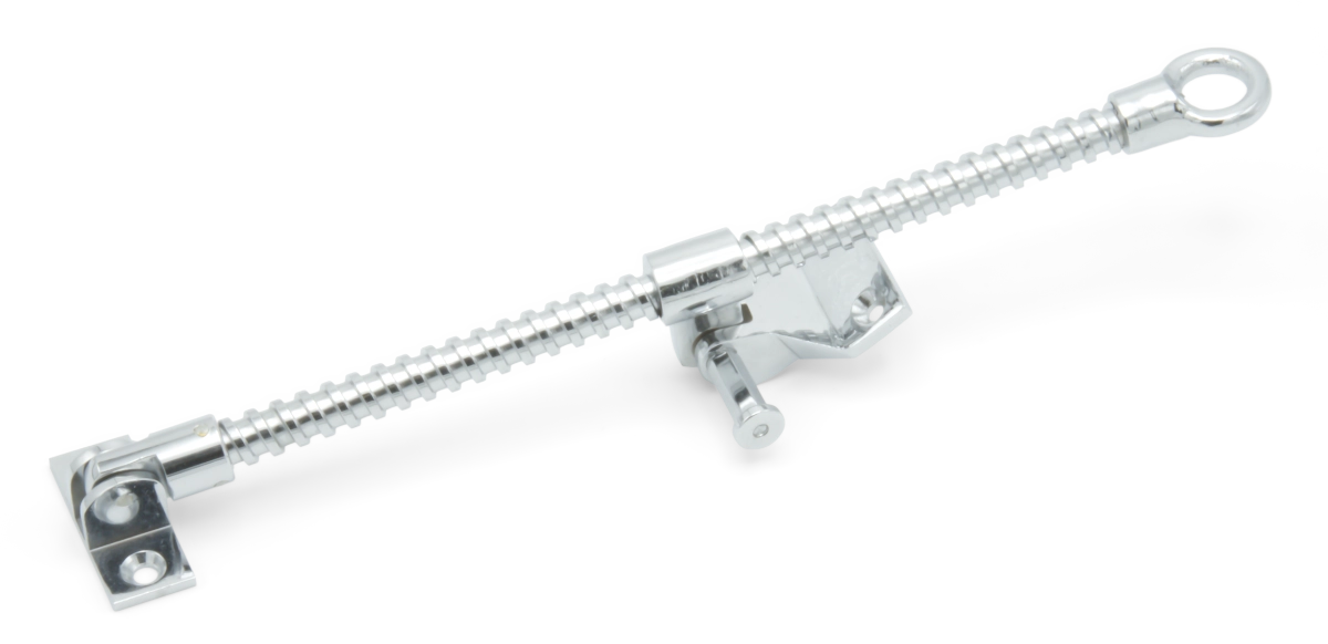 Single thread screwjack with small brackets and a polished chrome finish.
