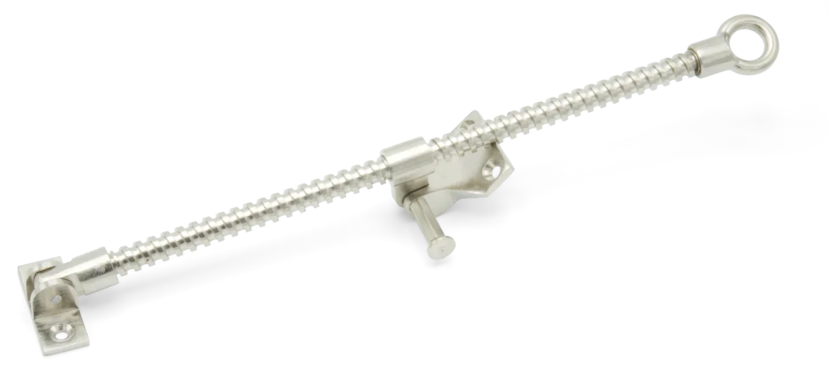 Single thread screwjack with small brackets and a satin nickel finish.