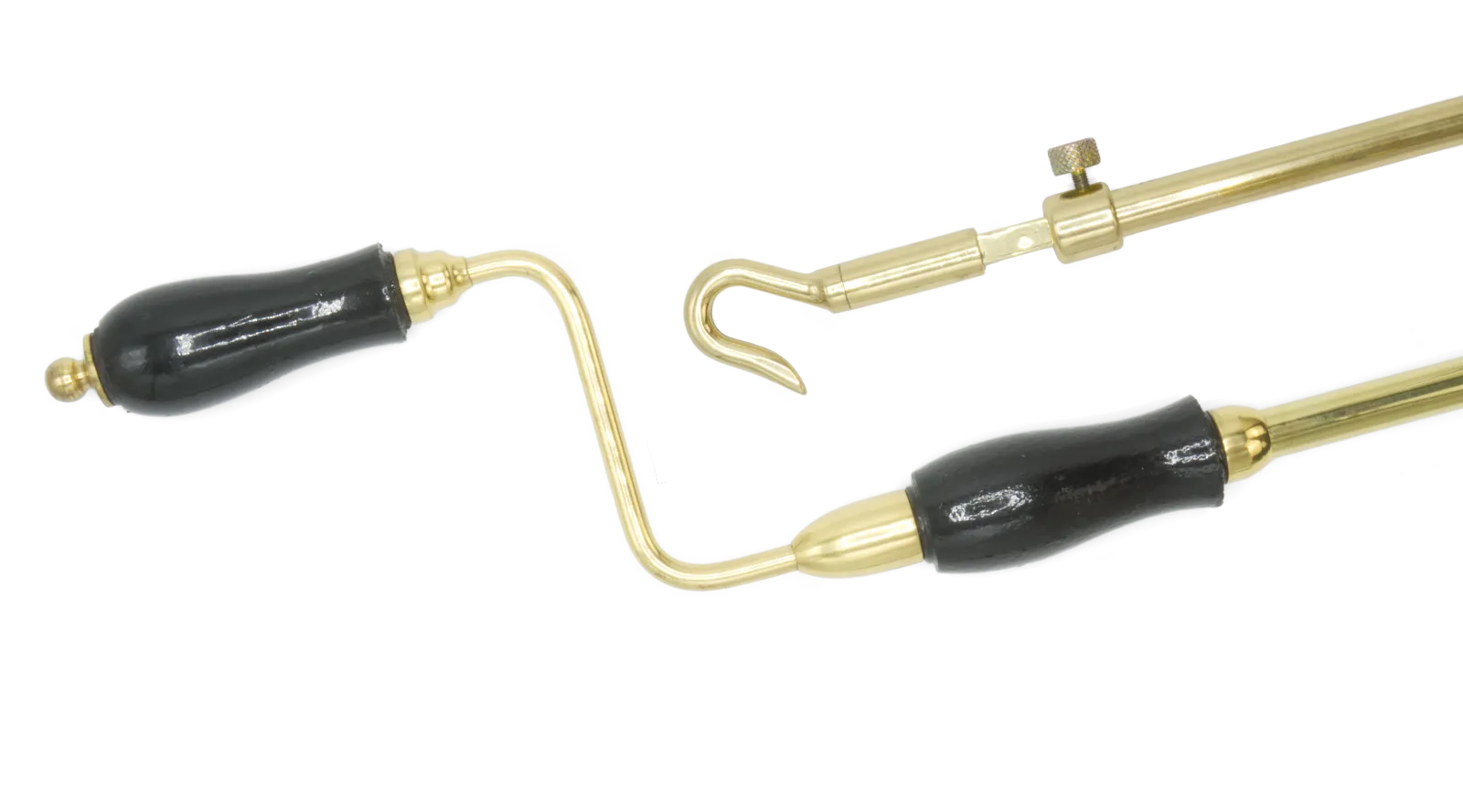 These winder poles are manufactured by hand with a hollow brass tube to keep the weight low. The components are secured with solid brass pins and all metal work is lacquered for durability. These window opening poles are suitable for use with our single and twin thread eyelet screwjacks.